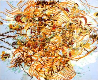 — Untitled, 2001. Encre et acrylique sur toile. Diptyque : 183 x 244 cm chaque panneau.