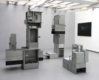 L’installation de Nicolas Moulin tire aussi vers le surnaturel du côté du cinéma expressionniste, Métropolis en tête, ou des films d’anticipation à la Blade Runner. Mais la réalité reprend très vite ses quartiers. Ce qui constitue les modules des immeubles est bricolé à partir de structures d’ordinateurs, d’unités centrales plus précisément. Là aussi, le «ventre» de la bête. Nicolas Moulin n’y a laissé que le squelette. Il a ensuite solidarisé ces morceaux, hétéroclites au départ, amoncellements cohérents et dynamiques à l’arrivée.