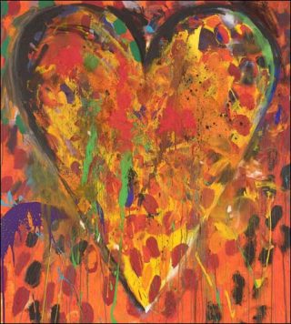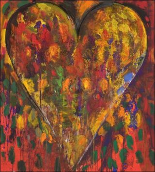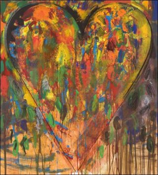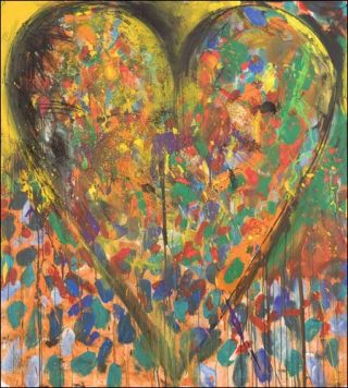 S’il n’est pas évident que Jim Dine parvienne à transmettre quelque chose de son intimité par le biais de ses toiles remplies d’un immense cœur plein de couleurs et de matières, la gaieté qui s’en échappe est, quant à elle, indéniable. Explosion chromatique, surfaces travaillées avec une fausse spontanéité et ce cœur, central, unique.