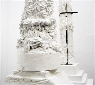 «Graceland» est une exposition construite comme un palais des plaisirs ou un caprice. L’occasion de découvrir La Chambre des Fontaines, La Chambre Rocaille et La Chambre du Glory Hole!. Luca Monterastelli, jeune artiste de la scène italienne, aime à fouiller une certaine archéologie du baroque. Il en puise et glane quelques vestiges qu’il manipule, assemble à d’autres trouvailles plus triviales et pauvres, comme pour en appuyer son effondrement et néanmoins rappeler son immortelle essence dramatique, exubérante et capiteuse… Il travaille ses sculptures avec des matériaux bruts autant que façonnés, où velléités Rococo se mêlent sans complexe à une certaine sobriété contemporaine; et fait ainsi émerger une posture et un jeu de formes singuliers.