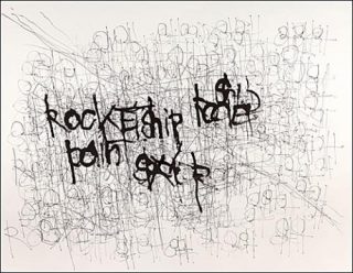 Ce qui frappe dans le travail de Dan Miller, c’est sa force d’expression, la vitalité du trait qui porte en lui une force brute. Il mêle les lettres et les chiffres en une multitude d’entrelacs à l’encre noire jusqu’à obtenir des magmas vibrants qui suggèrent l’énergie de la matière en mutation.
