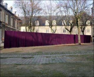 Par exemple avec Deep Purple et l’inclinaison improbable de cet immense panneau de bois — conçu en 2000 et installée dans la cour du Frac depuis 2008 — dont la chute semble possible à tout instant.