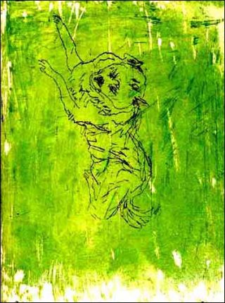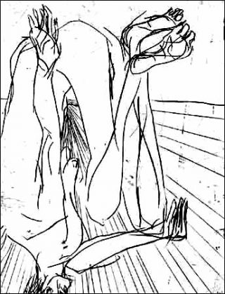 Si nous n’étions pas dans le contexte marchand de la galerie, nous pourrions presque croire que les trois gravures sur bois sont exposées à des fins didactiques. Par exemple, comprendre la différence formelle entre une eau-forte tout en finesse et une gravure sur bois, plus rude ; appréhender une certaine évolution stylistique entre Heuler (Pleureur) de 1985 et la série des Schlafende Hunde (Chiens endormis) de 1998-1999. C’est principalement dans les gravures sur bois que l’on sent le lien qu’entretient le néo-expressionnisme avec l’art primitif, populaire ou encore avec l’art des fous.