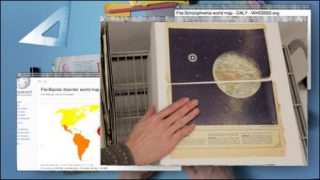 L’ordinateur apparaît en effet comme le cadre dans lequel cette impressionnante collection de mythes, de récits scientifiques et d’images va pouvoir se développer. L’ordinateur devient alors le support de nos connaissances actuelles, seul véritable outil capable de prendre en charge le flux ininterrompu d’images et d’informations qui constitue notre monde. Les fenêtres «pop-up» qui prolifèrent sur le bureau, illustrent quant à elles non seulement la démultiplication des sources de connaissance, mais aussi les connexions quasi illimitées que l’on peut établir entre elles.