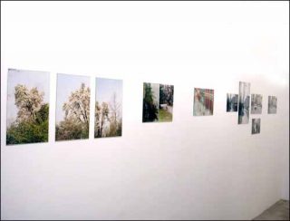 Deux photographies juxtaposées cadrent le même carrefour urbain. L’angle de vue est le même : seule change la circulation des véhicules et le mouvement des piétons. Avec le même principe de juxtaposition comparative, on assiste au changement des saisons. Deux séries d’arbres sont regroupées en triptyques : trois vues de branchages dénudés font écho à trois vues d’arbres en fleurs. On reconnaît le cadrage identique et c’est pourtant le passage qui se trouve illustré.