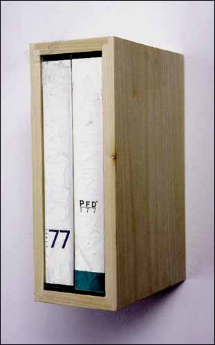 — K7, 2003. Boîtiers de cassette vidéo, bois. 22,50 x 8,50 x 14,50 cm.