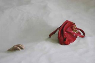 L’installation de Joséphine Faure est aussi ironique qu’inquiétante: une main de femme surgit d’une vaste étendue de sable, s’avançant vers un sac, à l’intérieur duquel sonne un téléphone portable. Ces sables mouvants suggèrent une profondeur insoupçonnée, dont on s’aperçoit en regardant la maquette qu’elle est bien réelle: Going Under est implanté sur un espace qui était une cuve. Ce creux bien réel prend ici une dimension abyssale, relayée par le fantasme des sables mouvants.