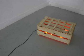 — Le Petit feu, 2006. Sculpture. Cageot, ampoules flammes. 30 cm x 50 cm x 20 cm.