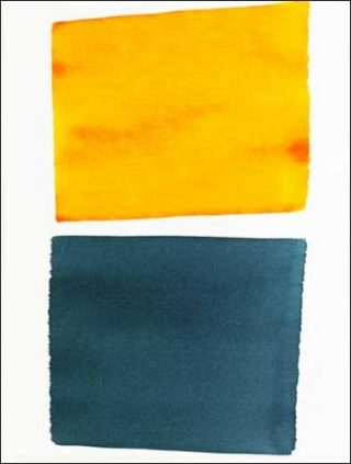 Les deux traces laissées par la brosse imprègnent la toile, sans épaisseur ni insistance. Le geste devient une forme, assimilée à un rectangle, deux plus exactement, superposés et décalés. Cette composition devient le support d’une infinité d’hypothèses qui s’expriment par la couleur et la surface de cette couleur. Aucune nervosité à la périphérie des deux formes, à peine quelques indices qui nous rappellent le sens du geste.