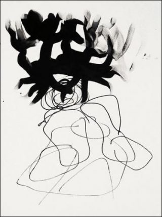 Les deux œuvres entrent autant en association qu’en dissociation agissantes. Aurélie Denis cultive une certaine violence: si bien que l’humidité de l’encre semble gicler du corps. Irina Rotaru tend plus vers ce qui structure mais pousse néanmoins à des turgescences. Entre ce qui est lâché et retenu se crée le dédoublement de l’émotion. Et ce jusque par le poids du crayon. Avec celui-ci Irina Rotaru crée, grave et incise. Aurélie Denis à l’inverse tend à un écoulement ample, une caresse.