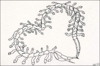Les corps sont épelés au sein de cette confrontation. Elle n’interdit pas la fusion — bien au contraire. Et si chaque œuvre pénètre le corps selon une dimension physique différente, les deux s’équilibrent par contraste. Entre le trait qui découle et celui qui découpe, surgit un véritable transport amoureux. Le corps devient hybride non par effet de genre mais par son ouverture du dehors sur le dedans; du dedans sur le dehors.