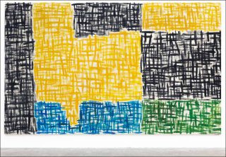 Mais il ne se limite pas à cette étiquette. Son intérêt pour le Bauhaus et l’architecture moderniste et dynamique en fait aussi un explorateur des liens entre forme et matière, qu’on retrouve dans sa manière très personnelle d’entrelacer, de tisser les motifs pour faire de ses toiles un nouveau matériau, une construction en soi.