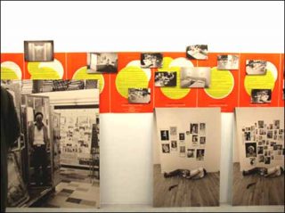 Ces panneaux se présentent comme des posters: sur chacun d’eux, on trouve les coordonnées de la galerie Air de Paris, les dates de l’exposition. Rien n’a sa place dans cette installation: les photographies sont disposées sur les posters, entravant la lecture. Il est difficile de lire et regarder en même temps: ces deux exercices de déchiffrement demande une acclimatation du regard à des structures différentes.