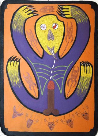 Charles Djerry nous invite à une transe au milieu d’oiseaux enchaînés à queues de dragons, de serpents à crocs, de têtes de mort peintes et de diables verts, au vévé porte-bonheur. Les Å“uvres choisies pour cette exposition reprennent des figures animales et mythologiques, entremêlées et stylisées, dans une glorification de la part sauvage et mystérieuse, magique, de la nature.