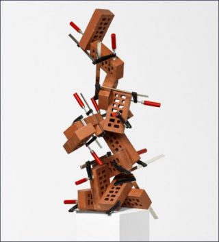 Dans Briques II (2012), l’assemblage d’éléments séparés est obtenu par des serre-joints. Ils deviennent alors eux-mêmes des éléments plastiques de l’œuvre, tout en permettant à la sculpture de s’élever dans l’espace. Ce dynamisme construit n’est pas sans rappeler le constructivisme de Tatline. Une sorte d’assemblage «néo-constructiviste héroïco-ironique» selon les mots de l’historienne de l’art Cécile Pichon-Bonin, pour qui «le propos de Sabatier se situe précisément dans cet interstice qui sépare le travail et son produit, réactualisant l’interrogation centrale des Constructivistes autour de l’abolition de la séparation entre art et travail.»