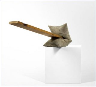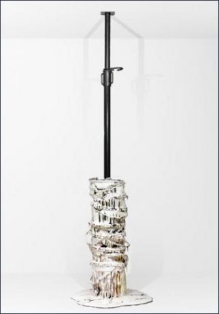 Benjamin Sabatier explore les limites possibles, fonctionnant par oppositions simples et radicales et par inversion des rapports de force: entre lourdeur et légèreté, solidité et fragilité. La série Cans (2012) tisse le lien entre ces paradoxes apparents: les canettes deviennent le support du bloc de béton; un conflit de matériaux qui régit l’essence même de ces œuvres. Cette dichotomie entre poids des matériaux et sensation de légèreté est récurrente dans ces nouvelles séries. Benjamin Sabatier joue avec les matières comme avec le rapport entre contenant et contenu. Avec Etai V (2012), la forme de la sculpture est obtenue par la pression d’un étai sur un pot de peinture. Le socle devient le réceptacle de ce que le pot contenait. Ailleurs, avec Etai III (2012), Barrel (2010) et Barrel II (2010), c’est une pression verticale entre sol et plafond qui provoque la déformation.