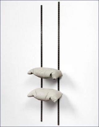 Dans la série Rack (2009-2010), les sculptures sont issues de sacs de sable à béton vidés et remplis à nouveau de béton. Ils sont ensuite mis à sécher sur des équerres et des crémaillères métalliques. Ces sculptures, une fois sèches, sont alors retirées de leur contenant en plastique. Les sacs font désormais corps avec leur système d’accrochage et de suspension. Le béton garde l’empreinte du support de séchage et laisse apparaître son propre poids dû au principe d’attraction; or on ressent une impression de légèreté d’autant plus prégnante que les sacs semblent s’être transformés en coussins.