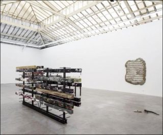 Ces poutres apparaissent donc comme des coupes anatomiques ou des strates archéologiques révélant ce qu’enfante notre monde, de quoi il se trouve fait, sur quoi il repose. En réalité, ces matériaux ont d’abord été condensés avec de la résine dans d’immenses blocs, que Nick Van Woert aura ensuite découpés mécaniquement.