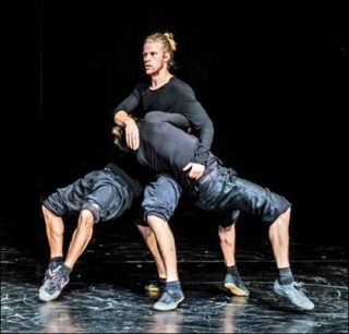 Bondir et virevolter d’un côté à l’autre d’un double mât chinois; tournoyer à trois dans une roue allemande; jouer de la guitare ou de la boite à rythme à six mains ; fondre leurs corps pour se mouvoir en une unique créature à quatre ou six pattes ; soumettre leurs têtes à une expérience de jonglage humain… À travers une partition ultra-acrobatique et d’une exceptionnelle précision, les Sisters se créent, dans un théâtre mis à nu, un espace de jeux qu’ils ne cesseront de métamorphoser. Obsédé par l’idée du timing parfait, le trio révèle avec cette première création un langage commun fait de dépendances et de singularités individuelles, entre goût du risque et de l’absurde, besoin de l’autre et art du décalage.