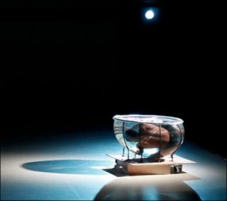 Avec Le syndrome de l’exilé, solo créé en 2011 et repris ici, il poursuit une recherche fondée sur le dialogue entre les arts, danse et vidéo en tête. Une épopée scénique sur les chemins de l’exil – volontaire ou forcé, intérieur ou migratoire —qui mène à la quête identitaire. Sur scène il apparaît empêtré dans un quotidien symptomatique, traversé par les souvenirs d’un amour déraciné, happé par une émission de radio sur la recherche du bonheur, avant de braver les routes et son ombre, un sac Tati sur le dos en guise de fardeau. Installant un univers jalonné de repères réalistes et allégoriques, Babacar Cissé emprunte les voies de l’exil comme métaphore de l’existence avec une exceptionnelle souplesse acrobatique.