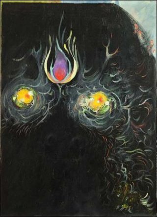 Peintures à l’huile et sculptures de laine nous invitent ainsi à ce voyage vers un au-delà visionnaire, parfois inquiétant mais jamais morbide. L’artiste poursuit sa série de peintures à l’huile «Healing Painting» initiée en 2013. Recouvrant presque intégralement — et sans soucis de la limite imposée par le cadre — des toiles d’occasion dénichées aux puces ou chez Emmaüs, l’artiste leur donne un nouveau souffle sans pour autant annihiler leur existence antérieure.