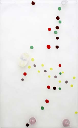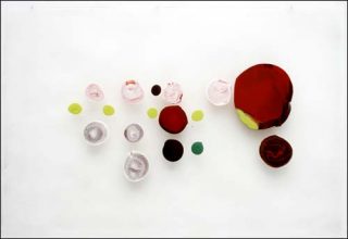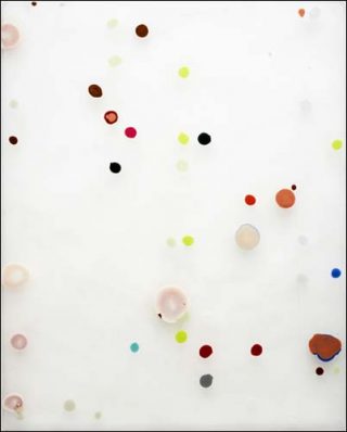 Depuis les années 1990, Helmut Dorner explore les possibilités offertes par la peinture sur plexiglas. Des taches de peinture pure, ou irisée d’autres couleurs, ponctuent de grandes surfaces transparentes, avec ou sans ordre apparent. Ici, les points colorés se succèdent, là ils se regroupent ou se dispersent. Parfois, les taches s’éventrent et se répandent, s’agglutinent en des formes indéterminées. Le rouge coagule avec le vert, le noir se poursuit dans le jaune, le blanc et l’ocre fusionnent dans un brun.