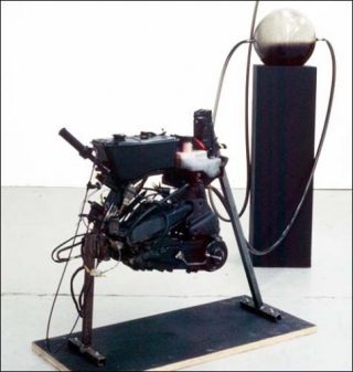 La sculpture Fewagas de Jean Dupuy est une version réduite de l’œuvre Fewafuel réalisée par l’artiste en 1969. Dans ce moteur en état de marche, les quatre éléments naturels, le feu, l’eau, la terre et l’air, qui sont d’ordinaires présents dans un moteur mais invisibles, sont rendus visibles. Ce sont les débris brûlés par les gaz polluants et qui se déposent à la vue de tous dans une boule en pyrex, qui représentent la terre. L’œuvre initialement soutenue par une firme américaine de moteur diesel est devenue une dénonciation du rôle joué par les entreprises industrielles dans la pollution.