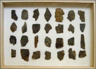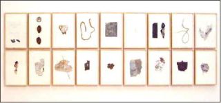 A la casquette de botaniste, Herman de Vries rajoute celle d’archéologue. Il classe les pierres qu’il ramasse par taille et par lieu de découverte et les présente dans des cadres qui rappellent les vitrines archéologiques présentant des échantillons de silex. Il poursuit sa prospection en creusant le sol à la recherche des cendres de Renata, la dernière sorcière brulée en Allemagne, et du charbon de son bucher, qu’il frotte ensuite sur le papier pour exhumer les traces de ce passé.
