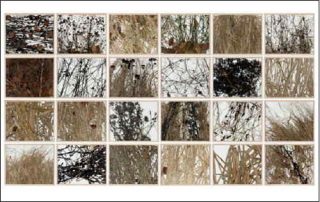 — Winter II, 2008. Végétaux sur papier, 12 aspects d’une même espèce végétale (carex). 66.5 x 129 cm, 12 éléments de 21,5 x 31,5 cm.