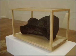 — Burned Oak, 2007. Fragment de chêne brûlé, vitrine. 50 x 78 x 47 cm.