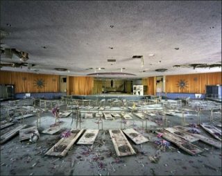 Mais la nostalgie n’est pas le sujet de Vincent J. Stoker qui présente ces architectures comme des lieux en perdition, et par là -même en devenir: appelées à devenir autre chose. Si ces photographies racontent bien l’histoire d’un échec, celui-ci nous tire vers le sublime, cher aux romantiques qui déjà , à la suite d’un Piranèse, faisaient des ruines un sujet de prédilection.