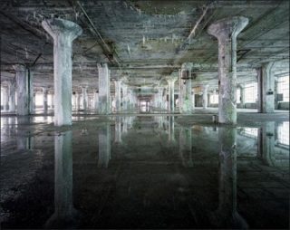 Là , un long couloir dont les murs décrépits se recouvrent de mousse. Ce retour de la nature porte un nom pour l’artiste: c’est la «chute tragique». Vincent J. Stoker sait également profiter des éléments avec ces photographies dans lesquelles l’eau qui stagne au sol démultiplie la perspective, donnant à ces architectures de béton un caractère d’infini.