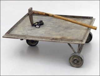 — Joseph Beuys, Ziege, 1958/1982, Three wheeled cart, iron pick, clay, 49 x 72 x 93 cm