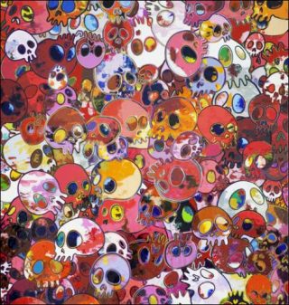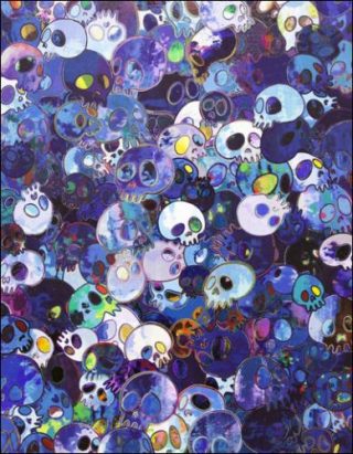 Takashi Murakami ne cesse pas de chercher et de se confronter à son statut de peintre. Il y a deux ans, il avait présenté une série d’autoportraits, cette fois-ci, ce sont des Vanités qui dialoguent avec l’Histoire de la peinture. Avec sa série de crânes, il faut prendre le temps de la considérer comme un témoignage sur le temps qui passe.