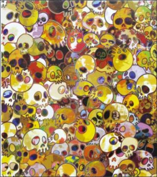 Murakami réinterprète ici l’art des vanités à travers des accumulations de crânes ou de fleurs, vertiges de l’infini où le motif semble s’effacer devant sa propre répétition abstractisante: MGST 1962-2011; MCBST 1959-2011; MCRST 1962-2011, etc.