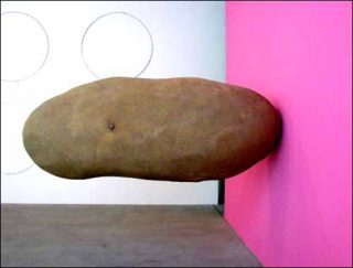 La cruauté affichée de Wurm à l’encontre de Mies van der Rohe trouve son explication avec Home (2006), patate géante sortant du mur qui interpelle le visiteur dès son entrée dans la galerie. On pense alors aux théories de Robert Venturi — pourfendeur du style International et inventeur du style postmoderne en architecture — pour qui le modèle ultime sont les bâtiments commerciaux de Las Vegas.