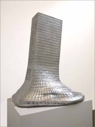 Mies van der Rohe — pape du style International qui prônait les formes pures — est mis à mal avec Mies van der Rohe Melting (2006). Le bâtiment fond comme un bonhomme de neige à la fin de l’hiver.