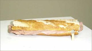 — Baguette, Flying Objects to Escape From Home, 2006. Résine acrylique et peinture. 6 x 25,6 x 8,5 cm.