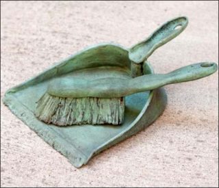 De larges tableaux de poussière fixés sur du papier garnissent les murs et, posées çà et là , des ensembles de pelles et balayettes sculptées dans du bronze patiné et teinté d’ocre, de vert ou de bordeaux, sobrement réalistes, ponctuent le sol. Au-delà de l’impression de vide qui s’impose, c’est une multitude de lieux différents qui sont exposés à la vue du visiteur à travers ces aplats de poussière.