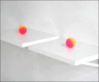 — Unstable Orange Symmetry. Bois et deux balles caoutchouc (unicat).