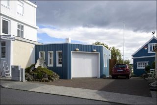 C’est la surprenante association de superstitions et de modernité que révèlent les photographies de Michel Eisenlohr, à travers des scènes et des visions particulièrement évocatrices de cette dichotomie. De nombreuses photographies sont liées par un motif commun : la présence de larges blocs de roche de lave au milieu de zones urbaines. Dans le cliché réalisé dans la rue Smiojustigur, un de ces rochers est accolé à des bâtiments très modernes et s’impose comme une excroissance tellurique jaillie au milieu d’un décor presque irréel, d’une netteté clinique.