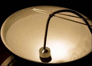 Un principe, où à une action directe du musicien, se substitue une force extérieure faisant résider l’acte musical autant dans la mise en place des éléments favorables à la création d’un univers sonore que dans son écoute. Dans une conférence de 1960, La Monte Young cite un poème chinois de la fin du VIIIème siècle dans lequel il est fait mention du qin, un instrument à cordes chinois, qui grâce au vent, sans que cela soit une volonté délibérée du musicien, se met à vibrer à la manière des harpes éoliennes. C’est ce même principe, de non agissement, de délégation à des forces extérieures conviant également l’aléatoire, qui se retrouve dans les installations et concerts de Tomoko Sauvage. Ici en lieu et place du vent ce sont l’attraction terrestre et la chaleur qui jouent le rôle de force agissante.
