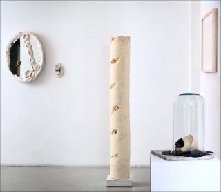 Le soin et le remède est le thème que traite Frédérique Nalbandian pour cette exposition à la galerie Eva Vautier, à Nice. Cette artiste a toujours travaillé la matérialité des Å“uvres, avec le plâtre blanc d’abord, lors de ses études à la Villa Arson, puis avec le savon de Marseille, qu’elle prend à bras-le-corps pour le sculpter, le déformer, le fondre, le frotter. On retrouve dans la matière le passage de la main de l’artiste, qu’on touche et qu’on complète avec le savon.