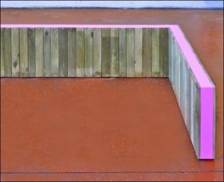 C’est en ce sens qu’il s’associe aux surfaces travaillées par les deux artistes présentés dans l’exposition, en relation directe au volume et à l’architecture. Ils mènent en effet, chacun à leur manière, une recherche sur les vibrations colorées qui induisent un mouvement.