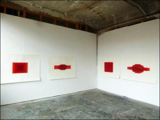 Les mouvements déployés dans chacune de leur démarche diffèrent. Dans l’œuvre de Kacha Legrand; c’est la centralité qui prédomine et qui s’exprime dans des variations de rouge et de blanc répondant à l’horizontalité du lieu par des formes étirées au mouvement excentrique.
