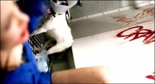 Enfin, et c’était jusque-là l’aspect le plus connu du travail de Milo Garcia, un «kit d’assemblage» en contreplaqué composé d’un panneau évidé des formes qui ont servi à construire un personnage courbé, la tête penchée, les bras ballants, personnage presque grandeur nature fixé au mur. L’œuvre s’intitule A Man, About 31, Just Chimping Out and/or a Self Portrait (2002). Le titre fait sans doute écho au titre général de l’exposition I M A GORILA C, anagramme du nom de l’artiste : Milo Garcia. «Chimp» est une abréviation pour chimpanzé.
