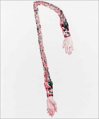 La sélection d’œuvres d’Eliza Douglas consiste en une série de peintures dont les motifs récurrents sont des membres humains. Des membres isolés sur le fond blanc de la toile et traités dans un style à la fois absurde, humoristique et fantastique.