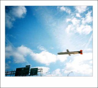 L’essentiel des photos s’amoncelle sur un mural : une petite dizaine d’entre elles compose un kaléidoscope étrange des États-unis. Les mythes du catastrophisme et de la sécurité à outrance y sont tous convoqués: des hommes en tenue de protection contre les radiations nucléaires, le siège du FBI, une mallette pleine d’euros offerte par un inconnu au regard du visiteur et surtout l’ombre d’un avion, etc.