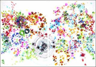 Les dessins colorés participent à l’élaboration d’un monde qui passe de l’infiniment petit à l’infiniment grand. Les toiles représentent le micro et le macrocosme. L’artiste se change en grand horloger et rationalise le monde comme dans Anthropic Principle. Après Smithson et son principe d’entropie, c’est toute une partie de l’art qui se dirige vers l’iconographie scientifique.