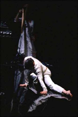 Au fond, il y est question d’eau. Au fond, tout au fond de l’eau. Ou à sa surface : car on ne sait pas, au juste, si Emmanuelle Vo-Dinh danse sur la peau d’une flaque, ou dans les profondeurs des abysses ; l’éclairage de Françoise Michel, en tout cas, nous transporte de la surface de l’eau, tout en miroir, à l’ondulation de la lumière dans l’élément aqueux.
